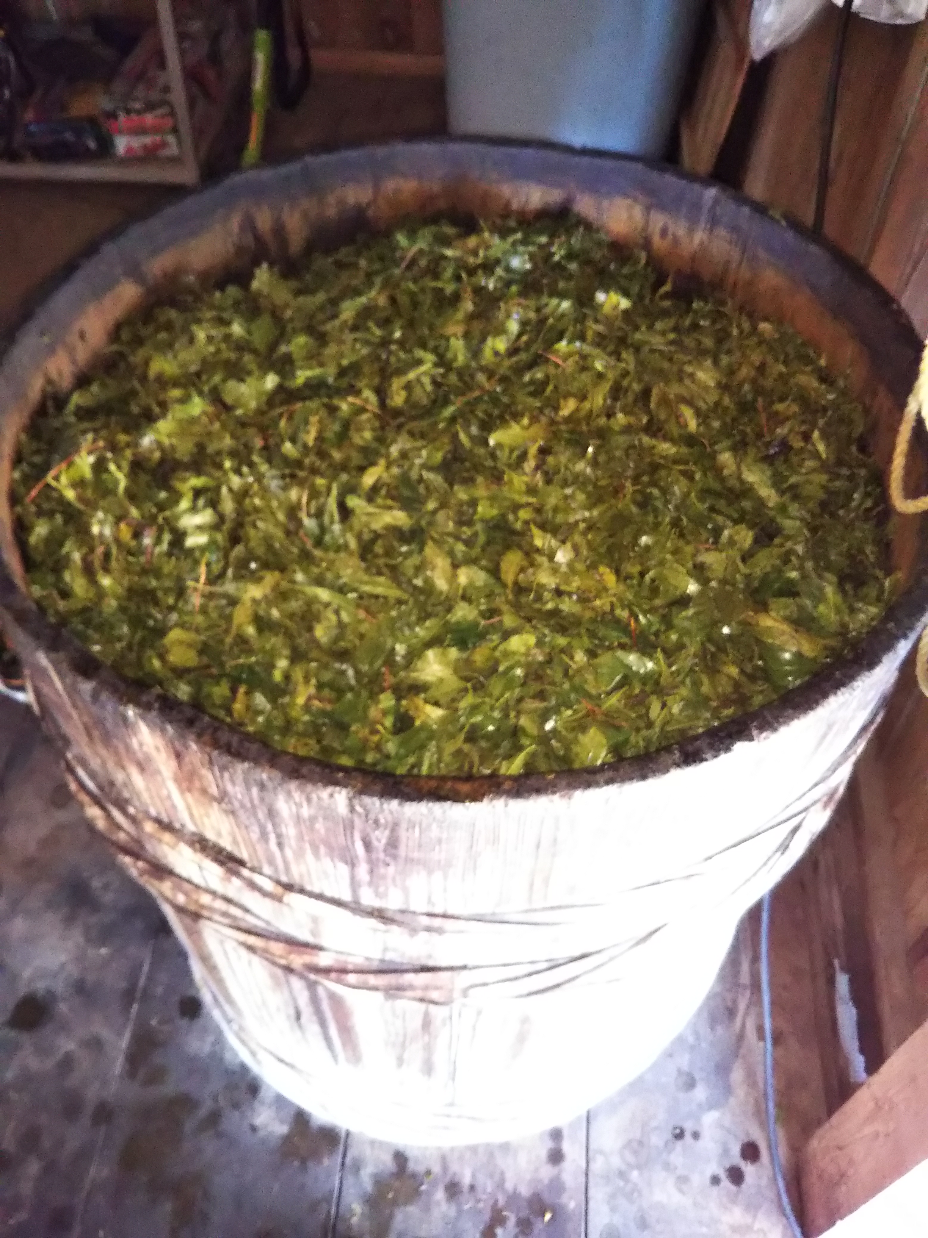 そんな中、昨年製造の上勝晩茶の中で、密かにまだ発酵中だった桶がありまして、その天日干し作業が完了しました。